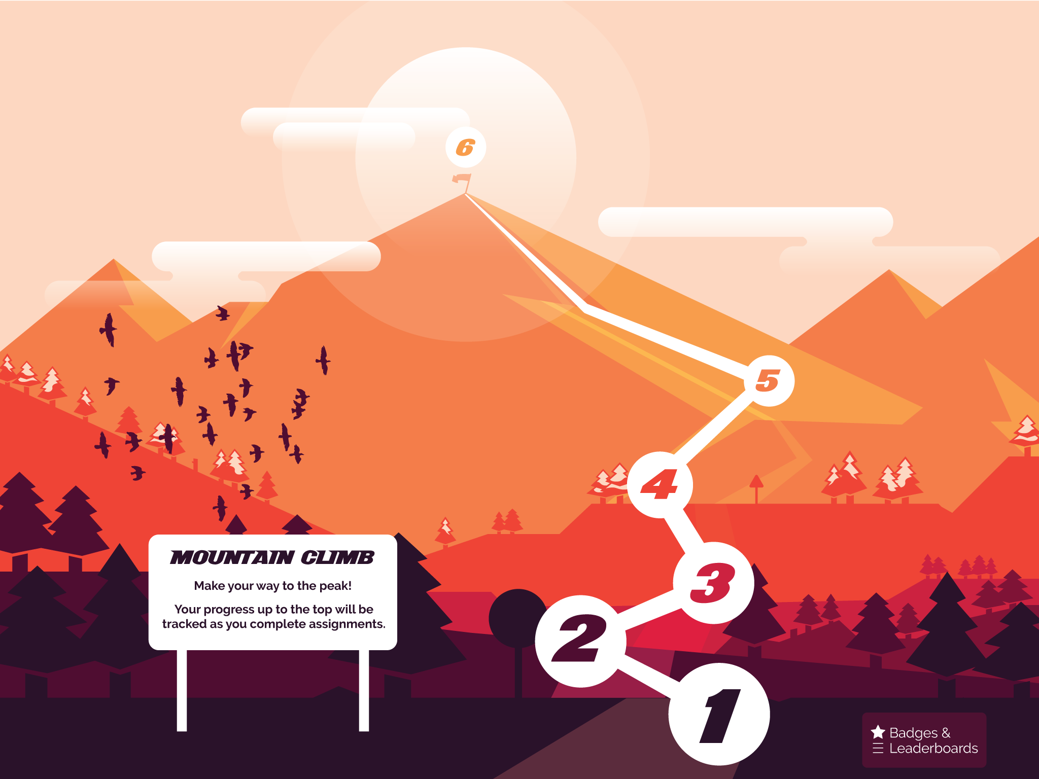 A selection of integrated gamification features available in OnPoint’s online & mobile platforms includes: